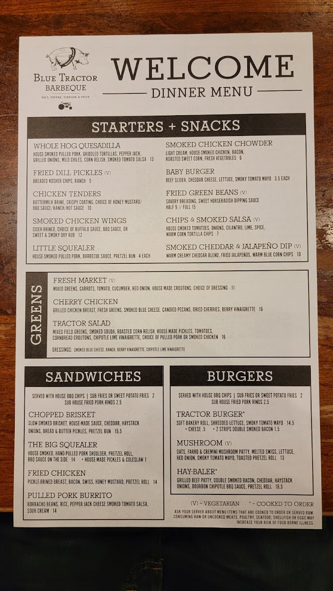 Welcome to Blue Tractor Barbeque, a culinary gem nestled in Traverse City, MI. This establishment is quickly gaining a reputation for its mouthwatering BBQ dishes, expertly crafted to satisfy your cravings. The menu features standout items like the pulled pork served on a toasted pretzel roll, renowned for its rich flavor, and the smoked half chicken, which captivates with its tenderness and smoky essence.